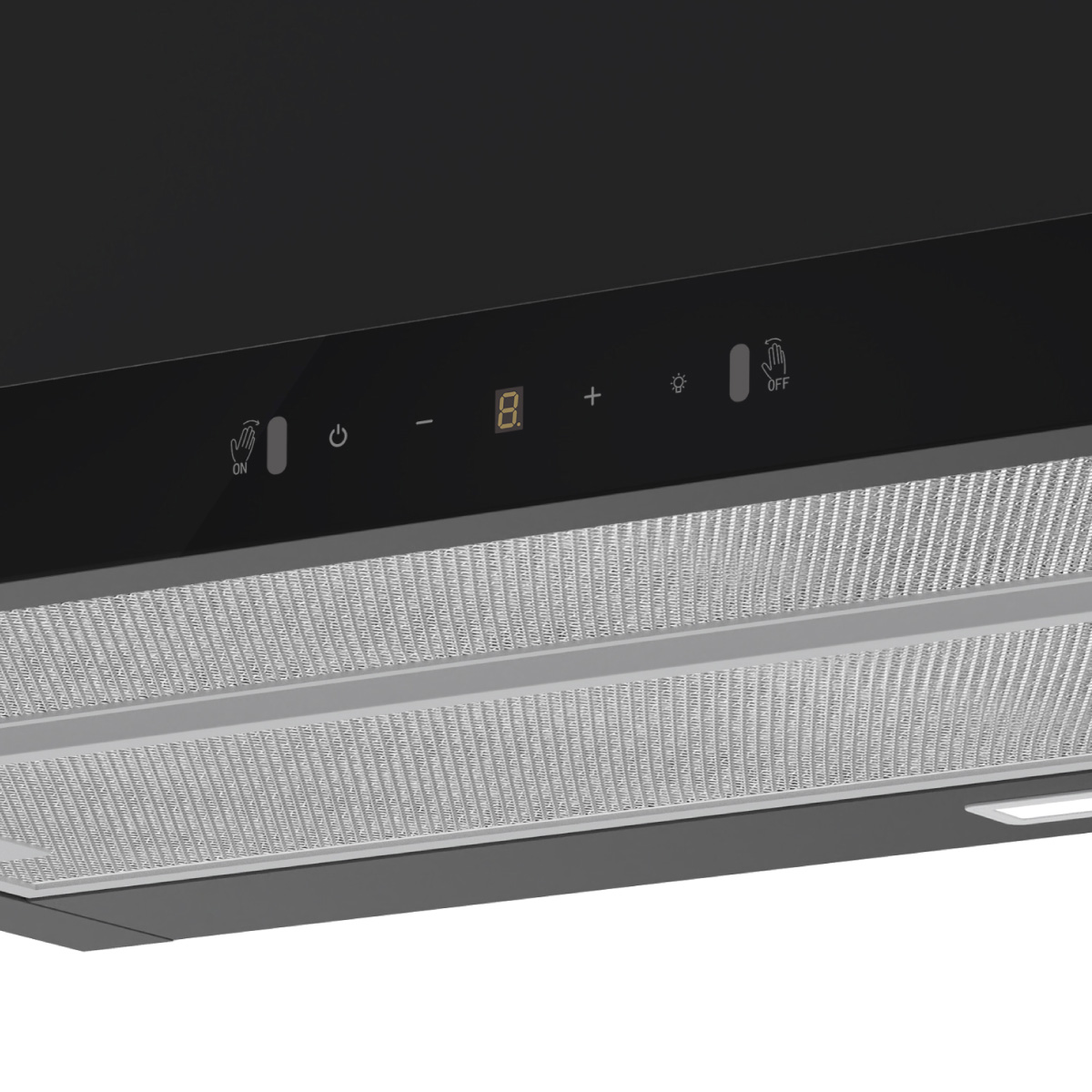 Su panel de vidrio templado con control touch y gestual permite un manejo intuitivo y sofisticado, mientras que sus 3 velocidades de aspiración y modo recirculación o extracción aseguran un ambiente siempre fresco y libre de grasas.