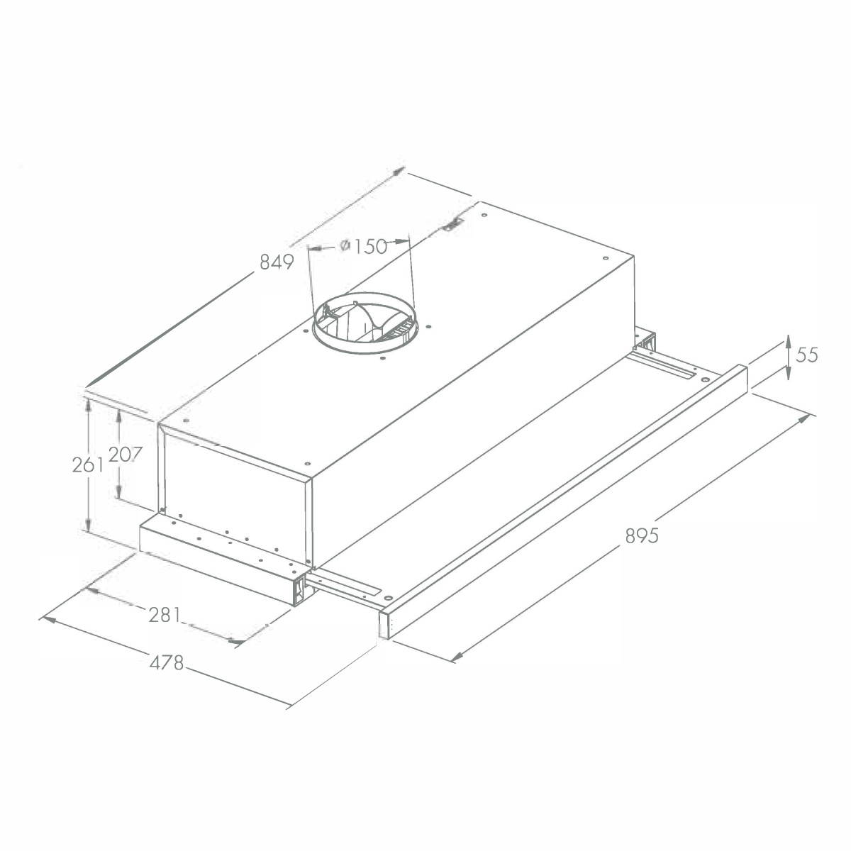 Dimensiones: Alto 26.1 x Ancho 90 x Fondo 28.1 – 47.8 cm (extraído)
